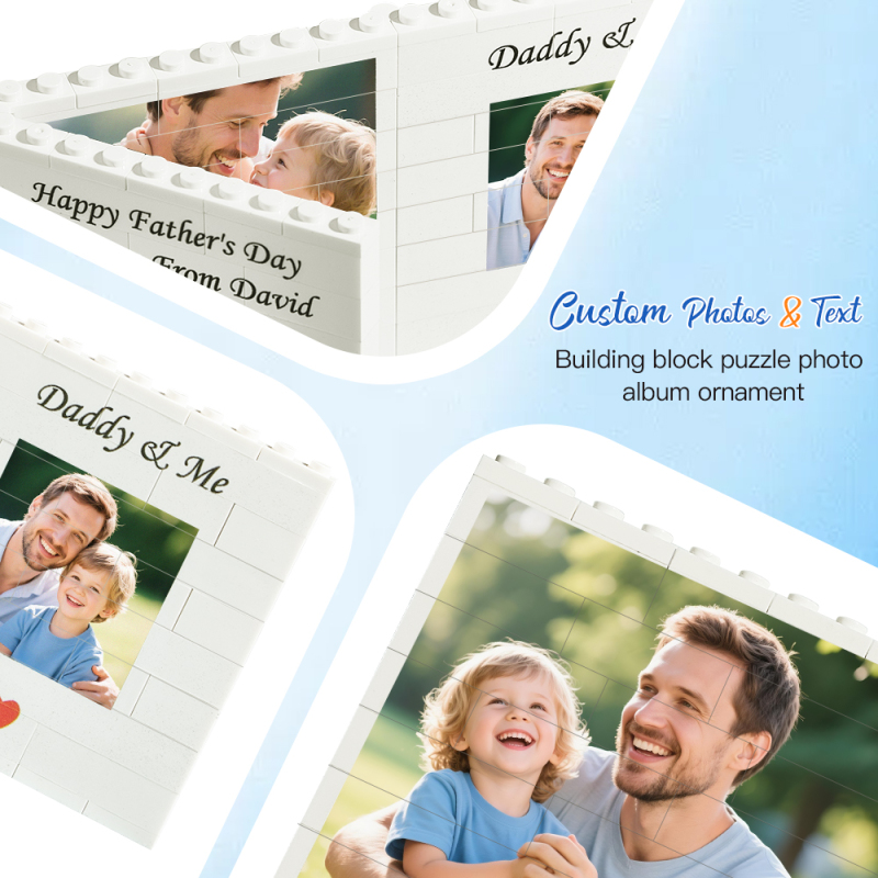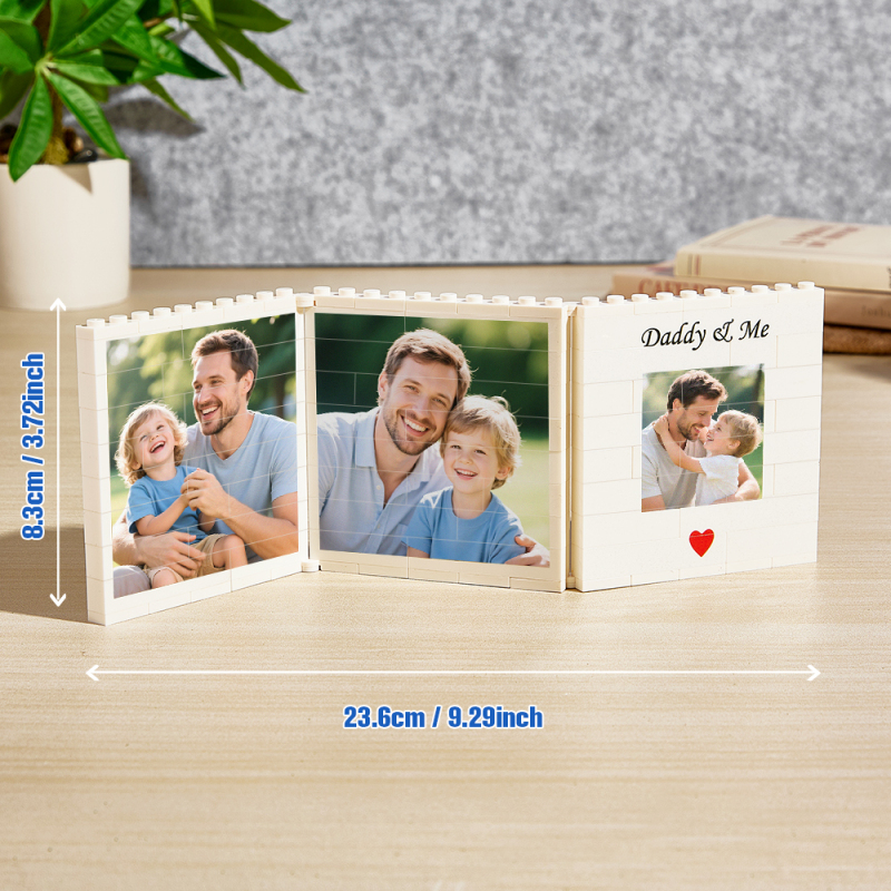 Personalised Fold-Out Daddy & Me Brick Photo Block Gift Mini Photo Album Keepsake Gift for Dad, Puzzle, Him, Dad, Fathers Day, Grandad