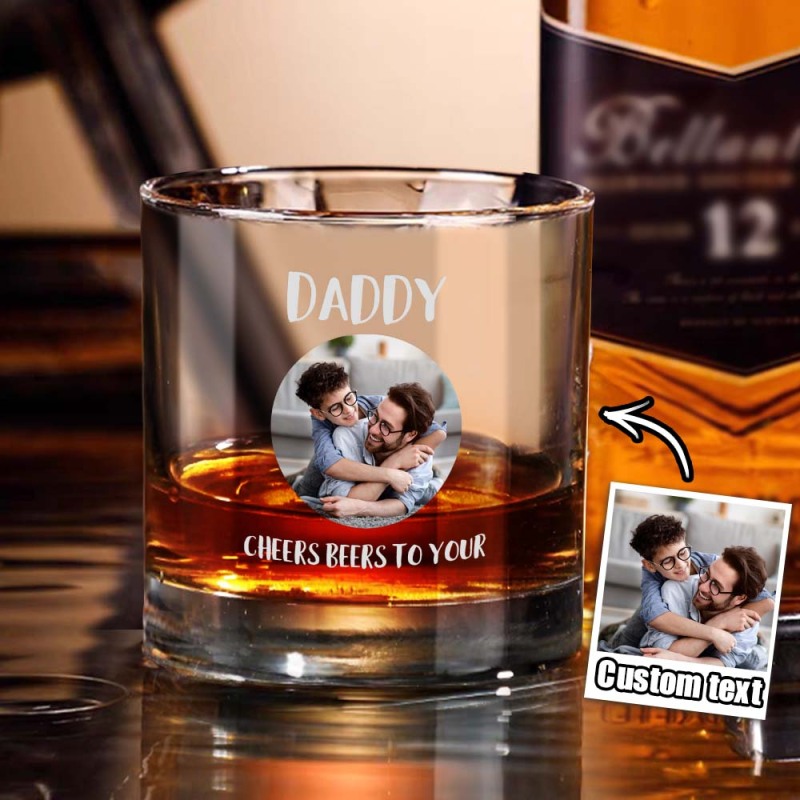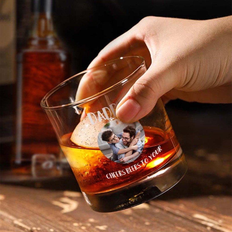 Personalized 10oz Photo Whiskey Glass with Texts Father's Day Birthday Gift for Dad