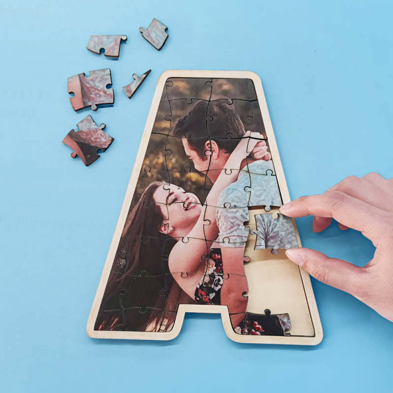 Personalized Alphabet Photo Puzzle Custom Letter Initial Couple Puzzle Unique Valentine's Day Gifts