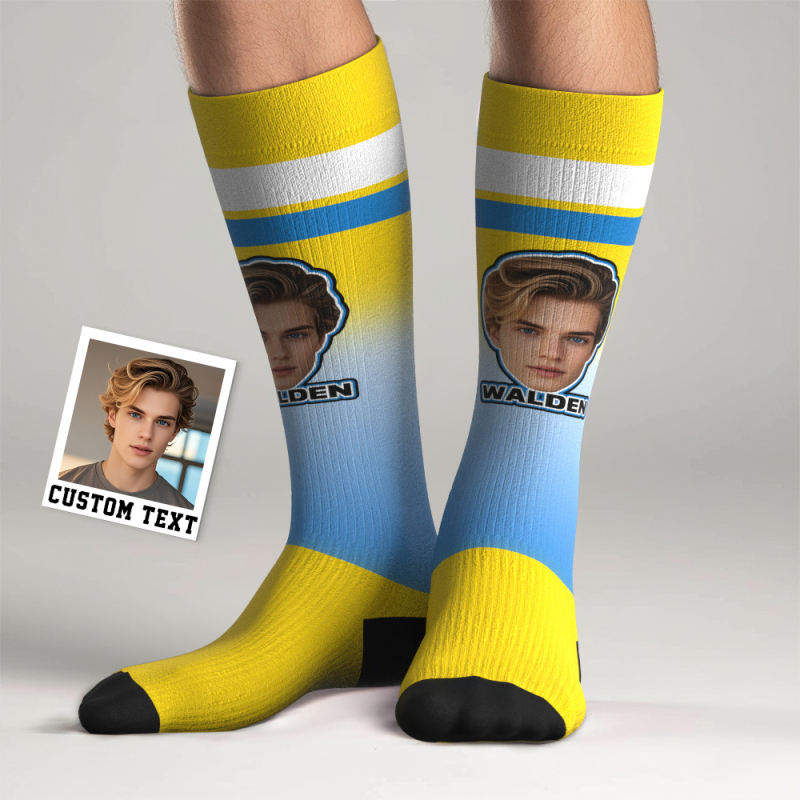 Personalized Athletic Knee High Socks Gradient Color High Socks Personalized Compression Socks Face and Text Knee High Socks