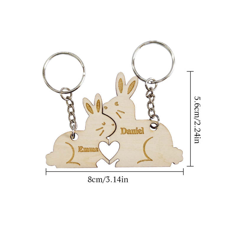 Personalized Couple Matching Keychain Custom Matching Bunnies Keychain Valentine's Day Gifts for Lover