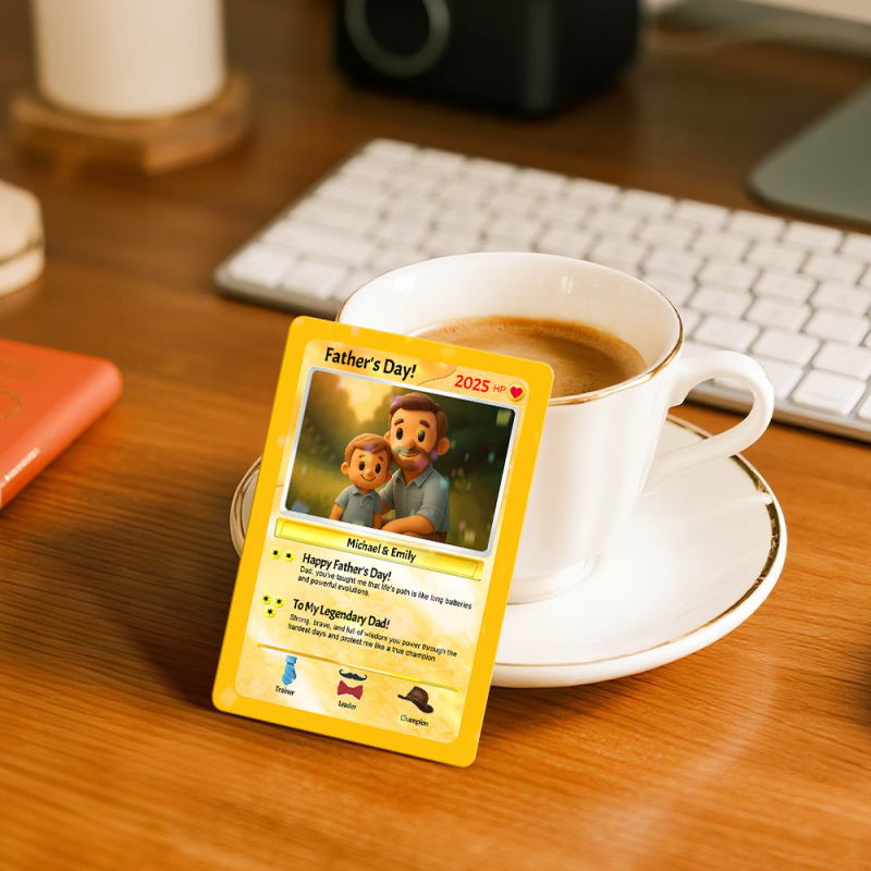 Personalized Cute Clay Style Father Card Retro Cartoon-Inspired Mini Gift for Him Photo Text Poke Card