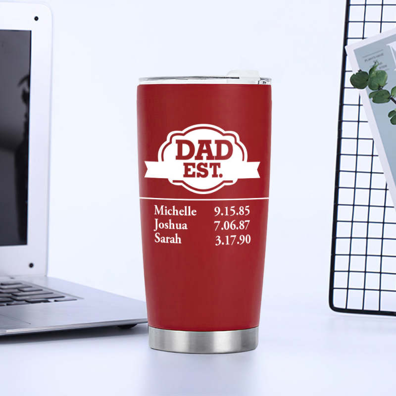 Personalized Dad Travel Mug with Kids' Names 20oz Stainless Steel Insulated Travel Mug Father's Day Gift for Dad
