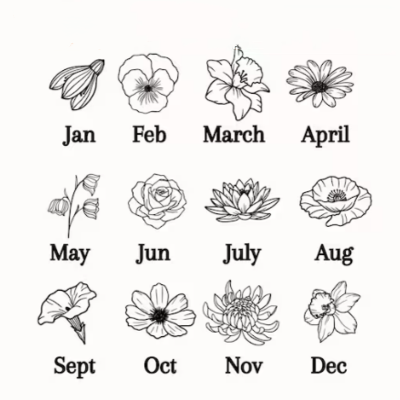 Personalized Family Birth Flower Bouquet Necklace with Birthstone: Custom Engraved Jewelry Gift