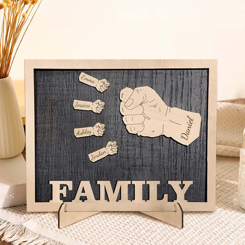 Personalized Fists Wooden Plaques Decor Sign Family Names Desk Plaque Gifts for Family