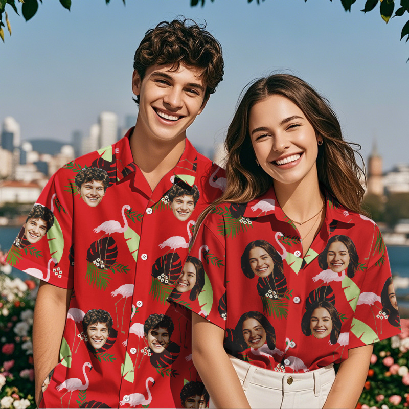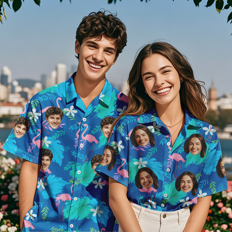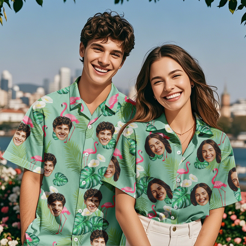 Personalized Flamingo Face Hawaiian Shirt Face Couple Shirt Valentine Gift For Couple
