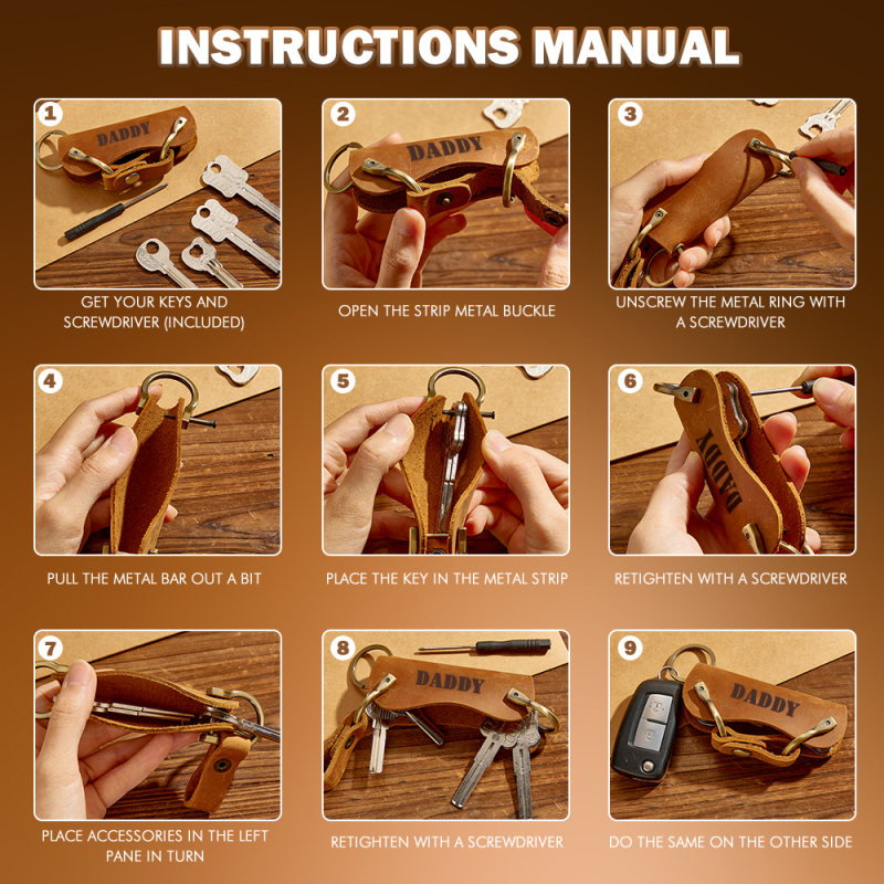 Personalized LEATHER KEYCHAIN Holder Key Chain Car Accessories Keychain Groomsmen Gift for Him Dad Men Gift for Birthday Custom Engraved