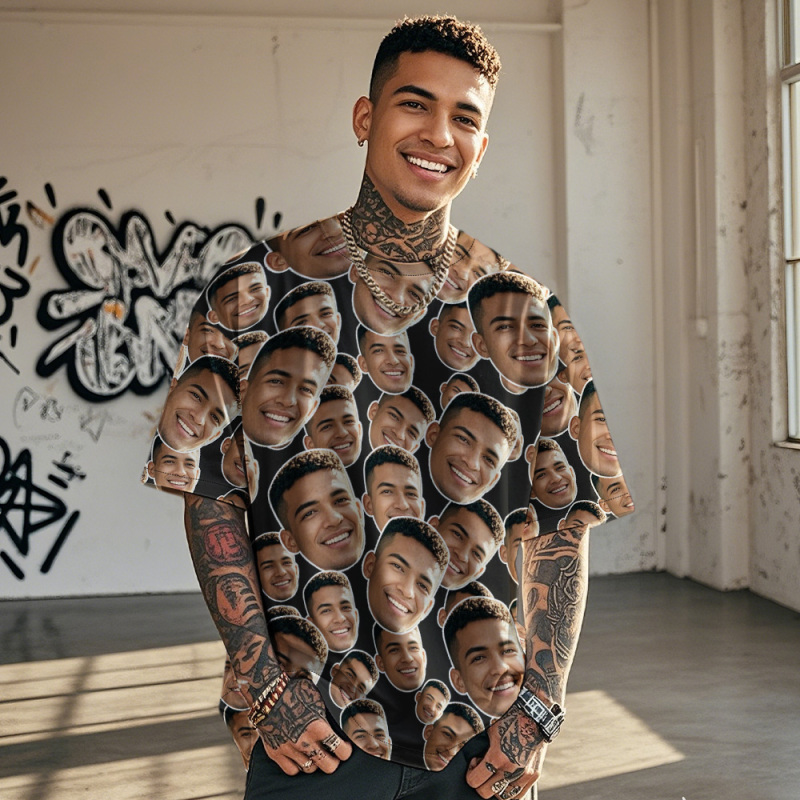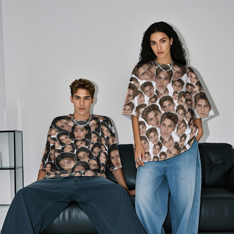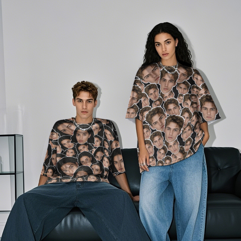 Personalized Mash Face Photo Vintage T-shirts Valentine's Day Theme T-shirt Gifts for Lover