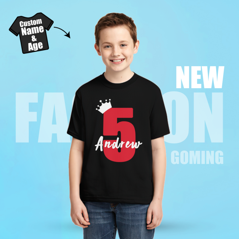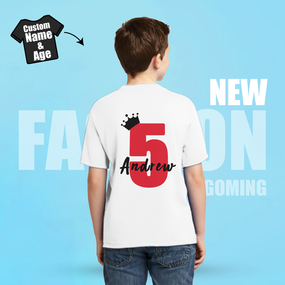 Personalized Name and Age Crown White T-shirt Children's T-shirt Custom Kids Clothing Top