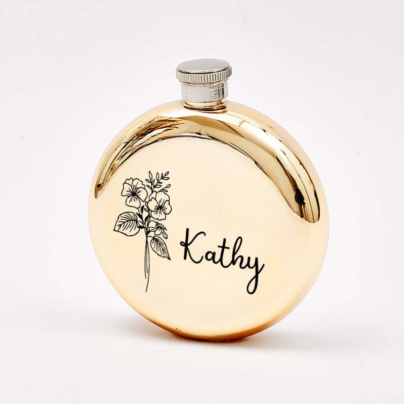Personalized Name Flask with Birth Flower Custom Flask Gift for Bridesmaid Bachelorette Friends