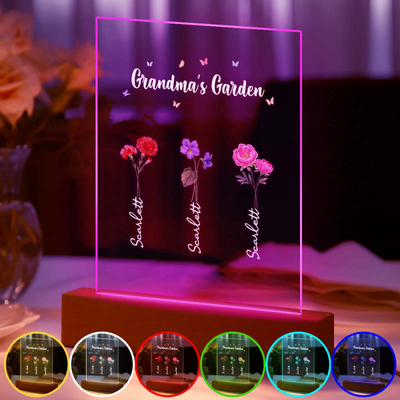 Personalized Night Light Grandma's Garden Birth Month Flower Gift