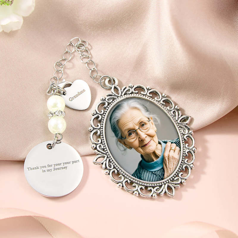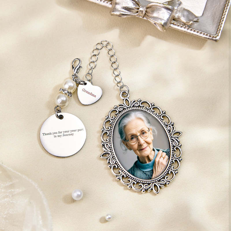 Personalized Photo Bouquet Charm with Heart Pendant Memorial Wedding Gift for Bride