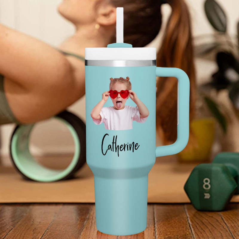 Personalized Photo Name 40oz Insulated Mug with Handle and Straw Stainless Steel Custom Travel Cup Gift for Family Friends Couples