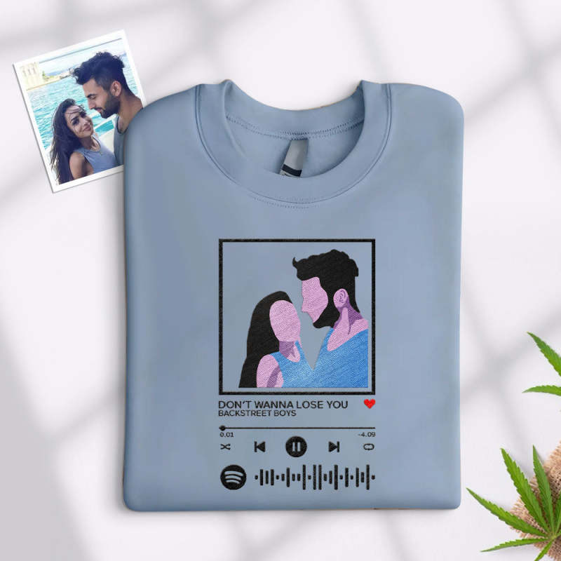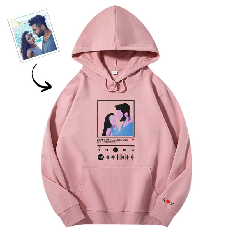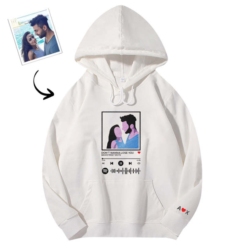 Scannable Spotify Code Embroidered Hooded Hoodie,Sweatshirt Round Neck Cartoon Image Music Player Couple Gift