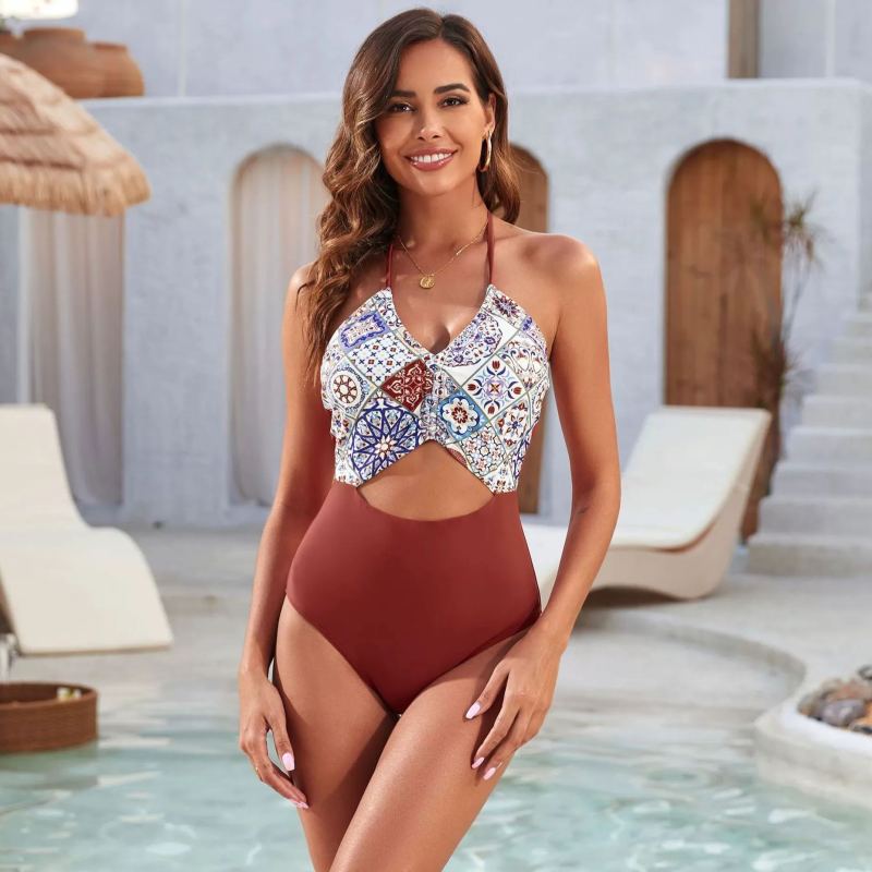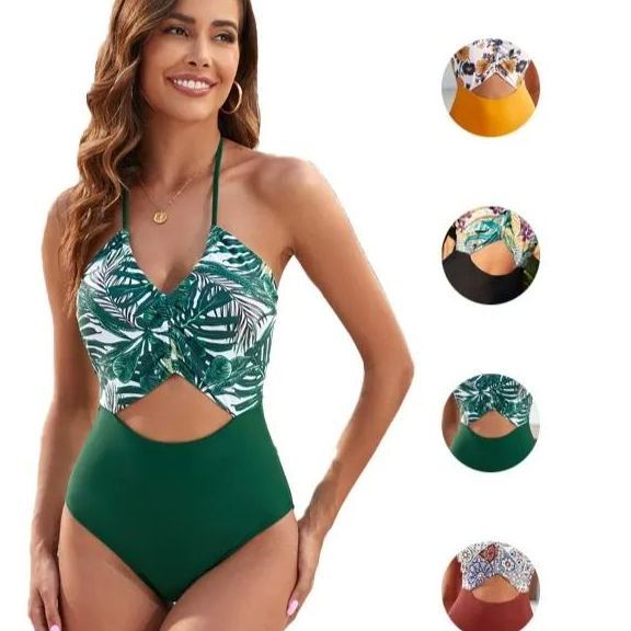 Sexy Bikini Women's Split Swimsuit Fashionable And Sexy Women'S Printed Leaf Stitching One-Piece Swimsuit