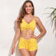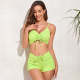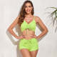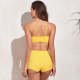 Sexy Suspenders Drawstring Split Swimsuit Solid Color Bikini