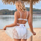 Solid Color Lace-Up Swimsuit Suspender Sexy Mesh Skirt Bikini