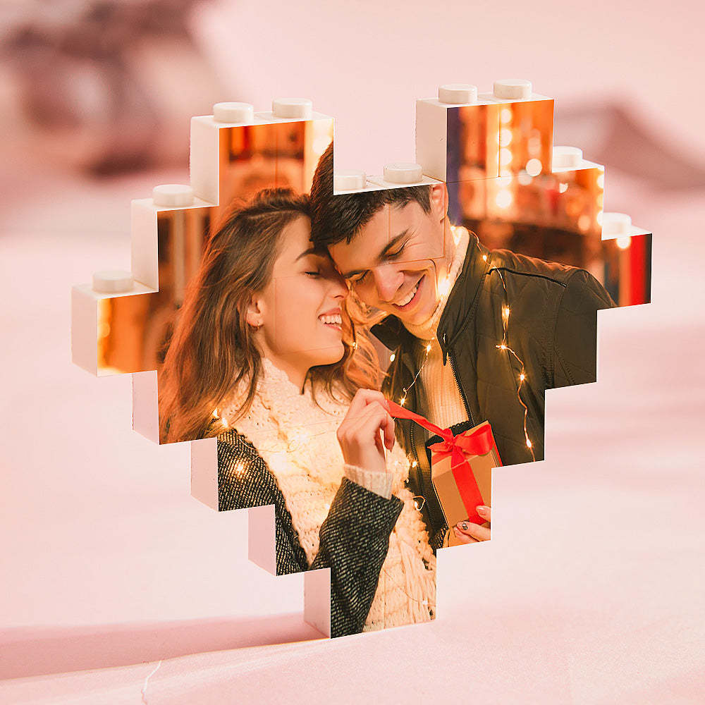 Valentine's Day Personalized Building Brick Heart Custom Photo Block Toy Home Decor for Couple