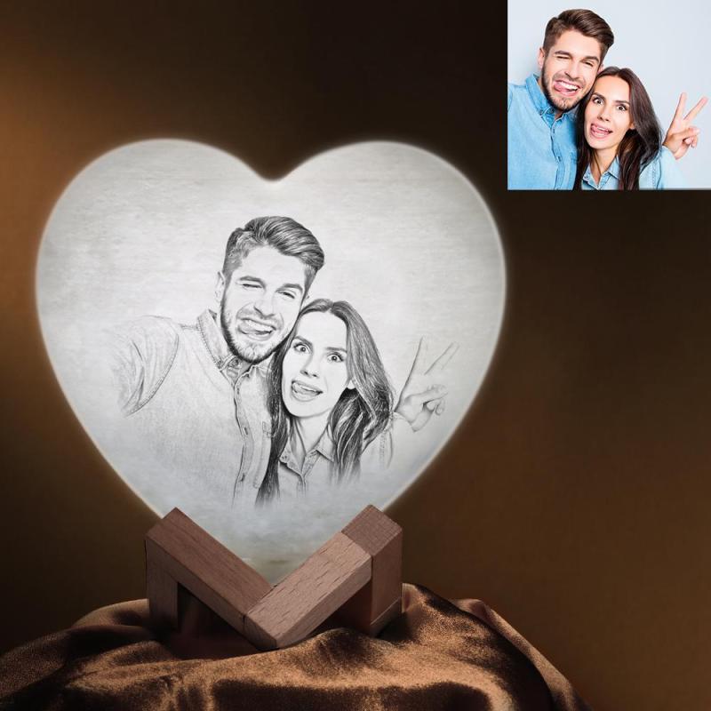 Gifts for Couple Custom Photo Heart Lamp Personalized Anniversary Gift Night Light 3D Printed for Wife