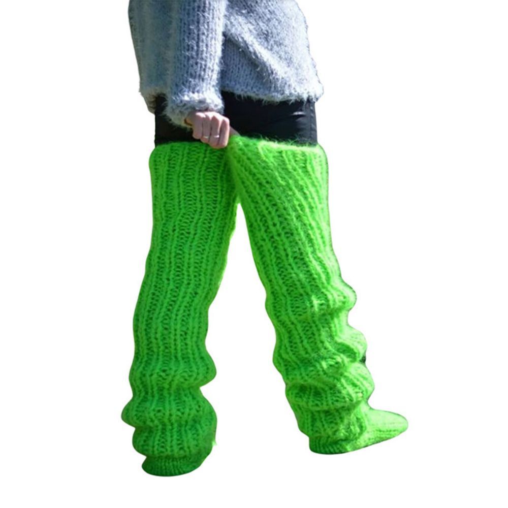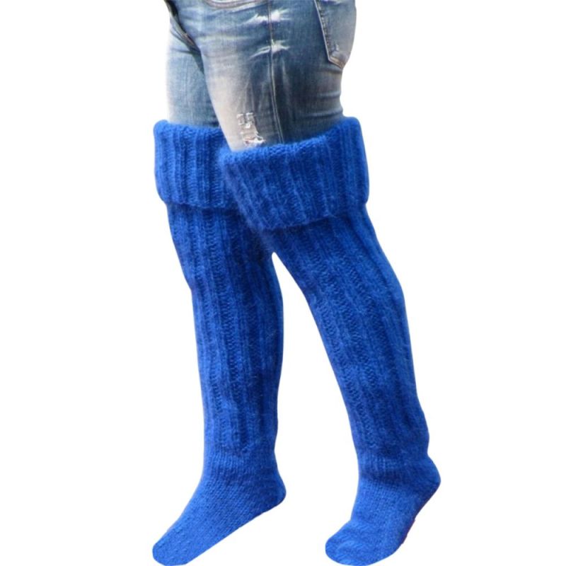 Solid Color Knitted Wool Socks For Women Above The Knee