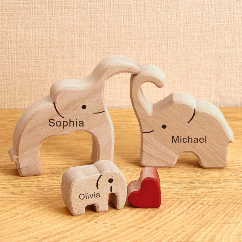 Wooden Family Elephant Puzzle Custom Names Home Decor House Warming Gifts