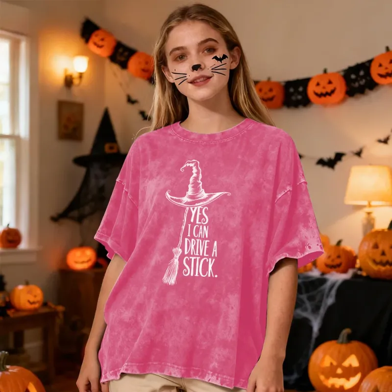 Yes I Can Drive A Stick T Shirt, Funny Halloween Witch Tee for Women, Spooky Party Shirt, Cute Halloween Gift Top, Witchy Costume Outfit